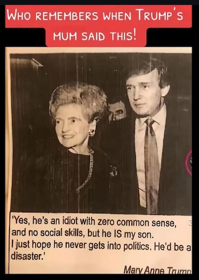 Trumps mamma hoppades en gång att Trump aldrig skulle lägga sig i politik. ”Han skulle bli en katastrof.”